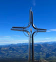Ein aussichtsreicher Berggipfel mit Bankerl vor dem Gipfelkreuz, so präsentiert sich der Scharnik, oberhalb von Irschen.