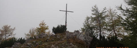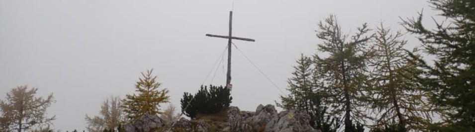 Nach einem Frühstückskaffee im Gasthof Sereinig geht es los auf die Rjautza. Wir folgen dem Steig über eine Wiese bis wir die Straße erreichen. Bald ist dann auch die Abzweigung auf die Rjautza erreicht. Eine Forststraße führt uns angenehm durch den schönen bunten Mischwald bis zu einer kleinen Jagdhütte. Nun verlassen wir die Forststraße und folgen den Steig erst mal steil bis auf einen Grat. Hier wird es kurz etwas flacher. In einen leichten Bogen führt dieser Steig weiter aufwärts bis man die ersten Felsen der Weißen Wand erblickt. Nach ein paar kurzen Felsstufen wird es nochmal kurz flacher, ehe der Gipfelanstieg beginnt. Anfangs gibt es da eine kurzes Geröllfeld zu überwinden. Anschließend warten noch einige Felsstufen ehe man das Gipfelkreuz erblickt. Leider stehen wir heute auf diesem Gipfel im Nebel. Bei schönem Wetter würde sich von hier ein traumhafter Blick auf die Wertatscha bieten. Naja man kann nicht immer alles haben. So bleibt uns nur der Blick auf das einfache Gipfelkreuz. Nach einer kurzen Pause treibt uns der Nebel wieder abwärts. Der Rückweg erfolgt auf derselben Strecke wie der Aufstieg zurück zum Gasthof Sereinig. Hier lassen wir die Tour bei wirklich leckeren Essen ausklingen. Dieser Berg sieht mich sicher wieder mal. Hoffentlich dann bei schönem Wetter.